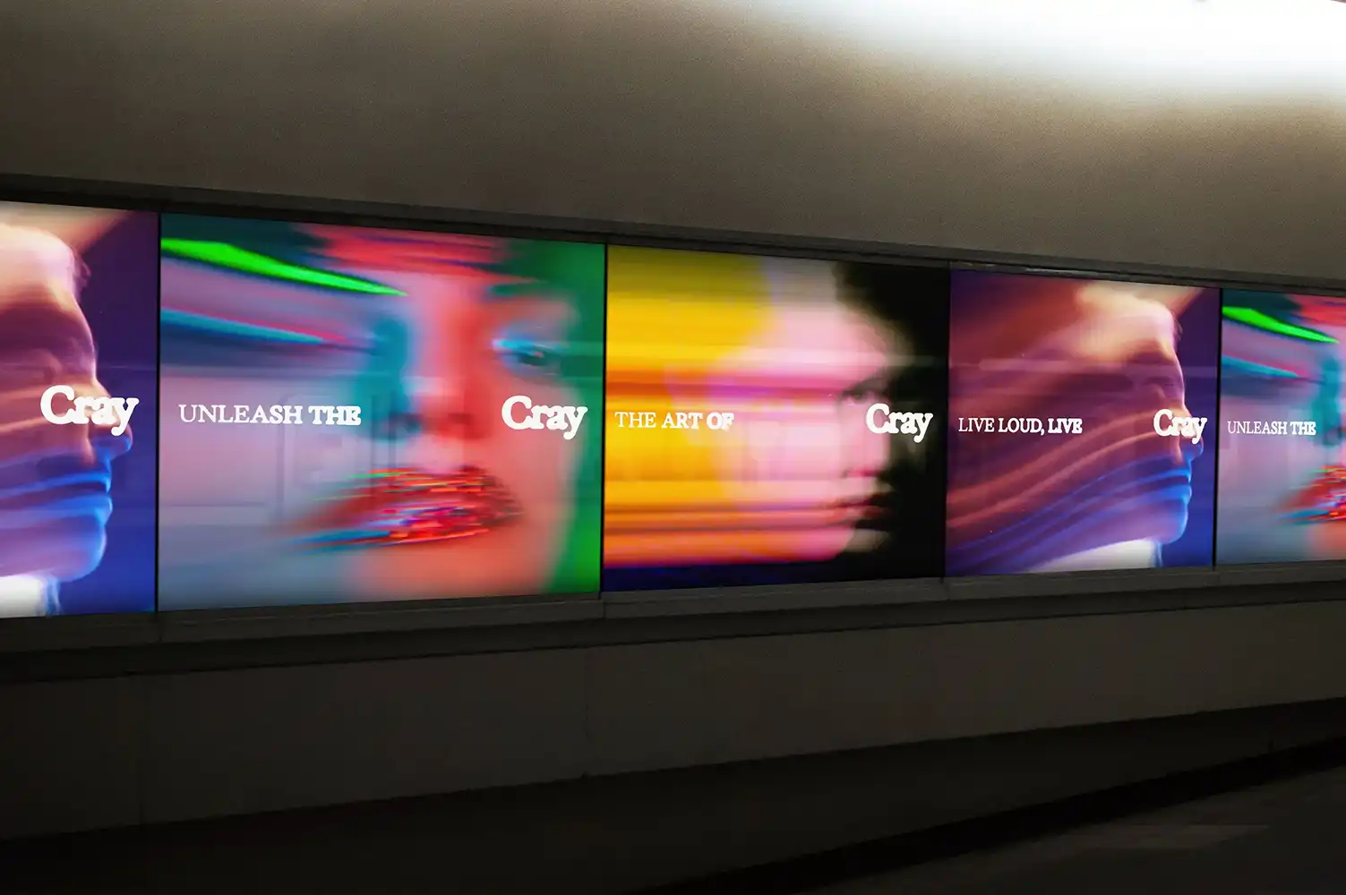 Cray’s kinetic logo captures the rhythm of music through its ink-bleed effect, flowing and transforming with every motion. This dynamic design mirrors the energy of the brand, constantly evolving and resonating with the pulse of the moment. It’s a visual dance that brings Cray’s identity to life.