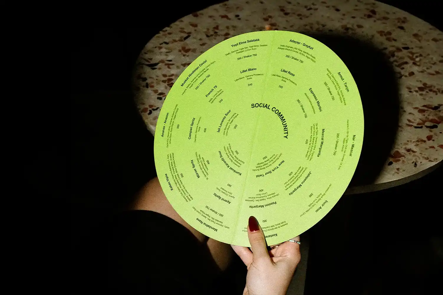 Inspired by the playful energy of a great night out, Oli Oli’s circular cocktail menu mirrors the vibrant and dynamic spirit of the brand. Its unique shape represents the shared joy and connection that the Oli Oli community experiences with every sip.