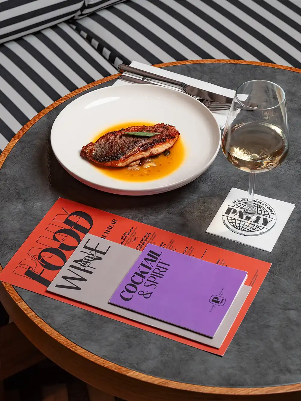 In a world leaning toward digital, Pally’s menus preserve the charm of the tangible—designed to be felt, touched, and admired. Each menu reflects the mood of its offerings—vibrant for cocktails, refined for wines, and warm for dinner. So captivating, they’ve become part of the decor—and often “disappear” into guests’ hands by the night’s end!