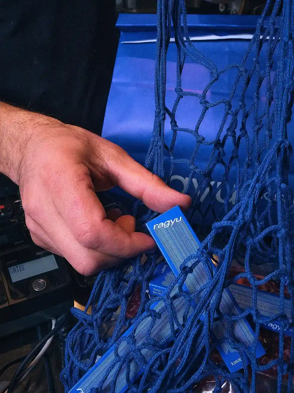 We created a collection of visually appealing stickers inspired by Ragyu’s universe, where the meat is blue. Each sticker is unique, adding excitement to every product, from cold meat packaging to in-store displays. Customers never see the same one twice, turning every interaction into a delightful surprise.