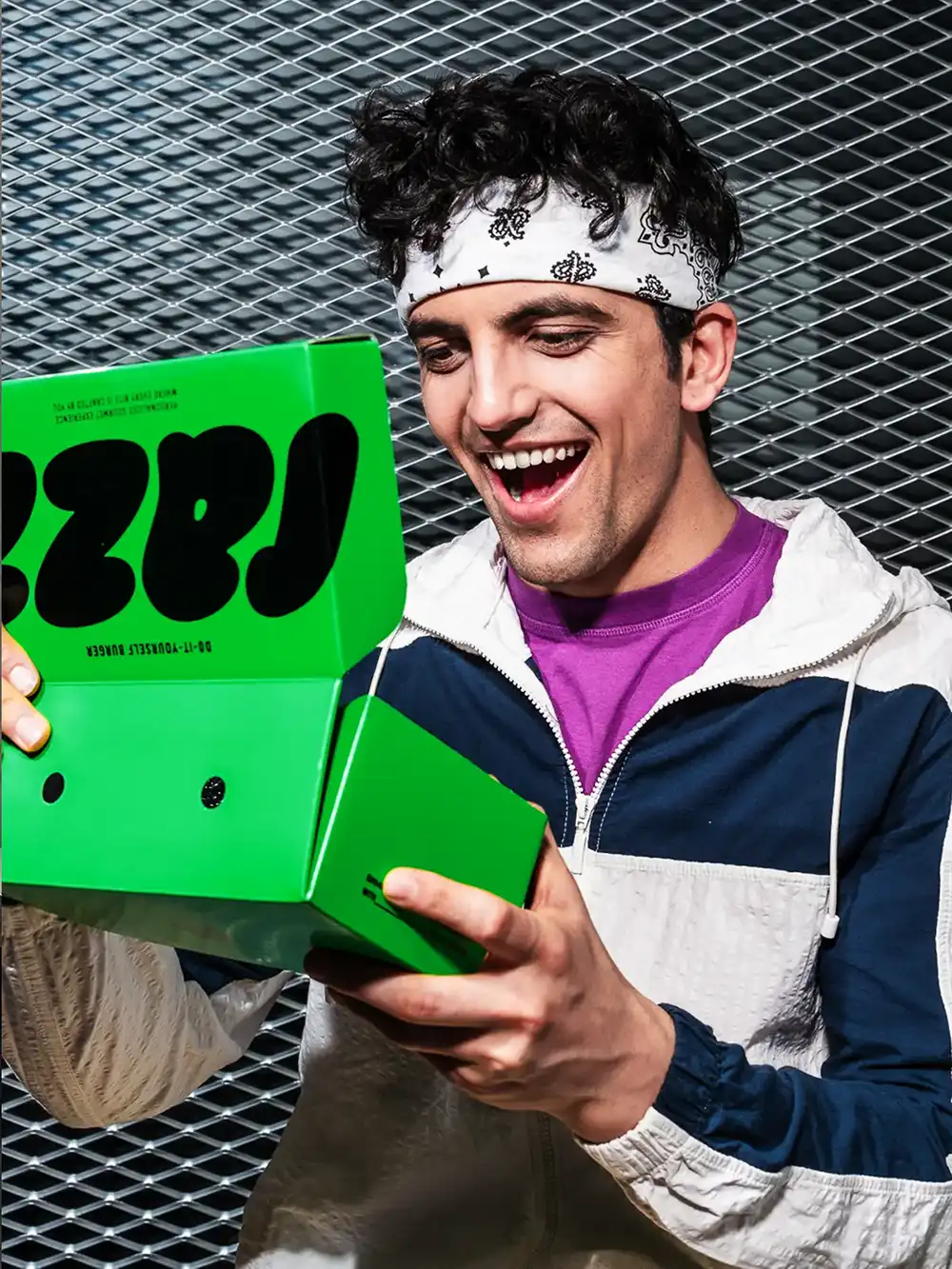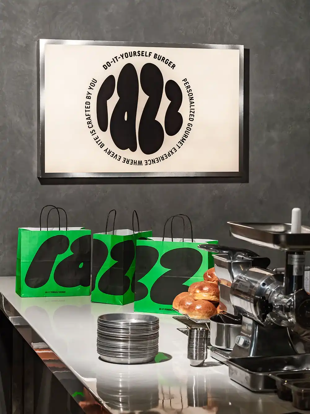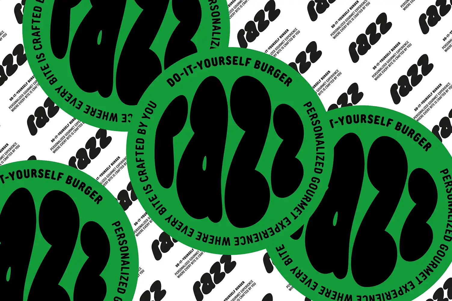 Bold and imperfect, the Razz logotype draws inspiration from street graffiti, embodying the individuality of the DIY burger-making experience. Each letter carries its own personality, just like every burger crafted by Razz’s customers.