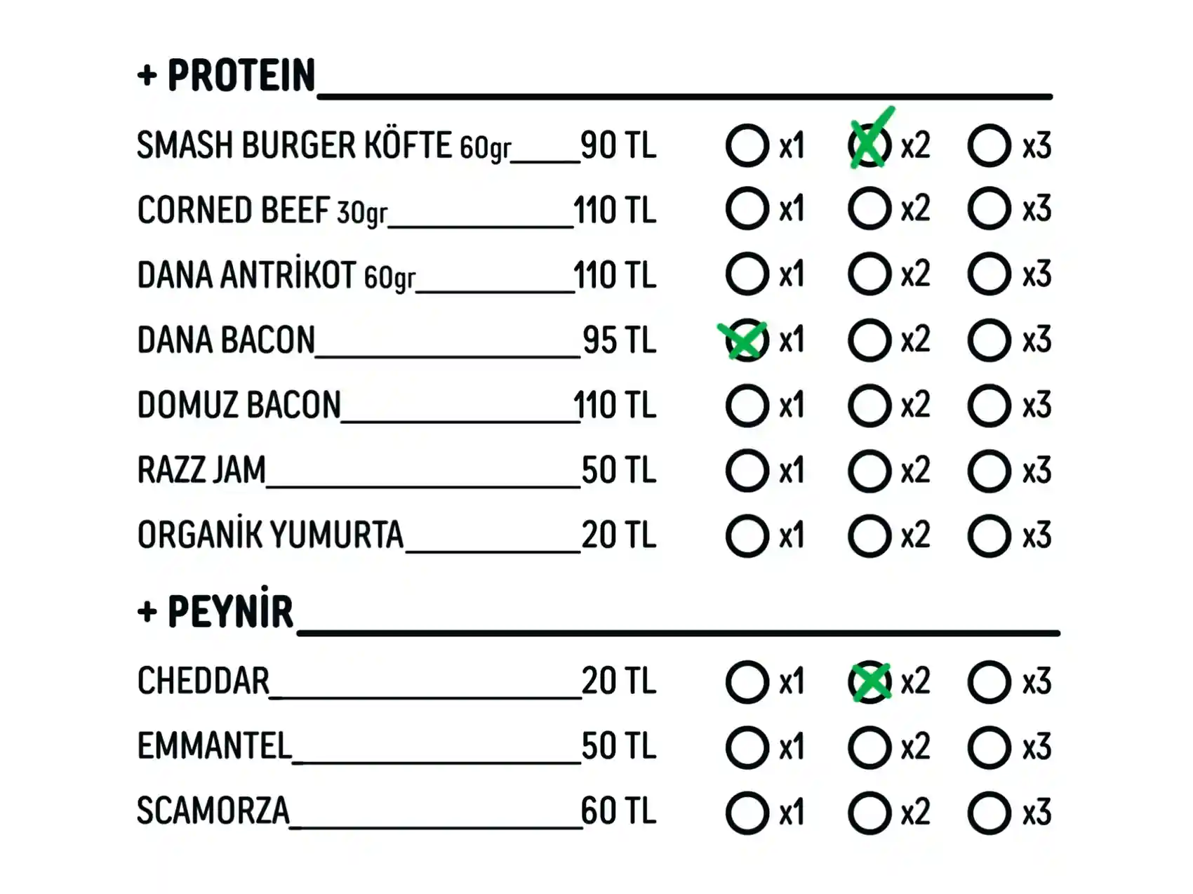 Razz lives and breathes the Do-It-Yourself spirit. The menu, designed as a form to tick your preferences, turns every order into a personal creation. Whether customizing pre-set burgers or building your own from scratch, it’s all about putting the creativity in your hands. Inspired by the "IKEA effect," Razz makes every customer the star of their own burger story.
